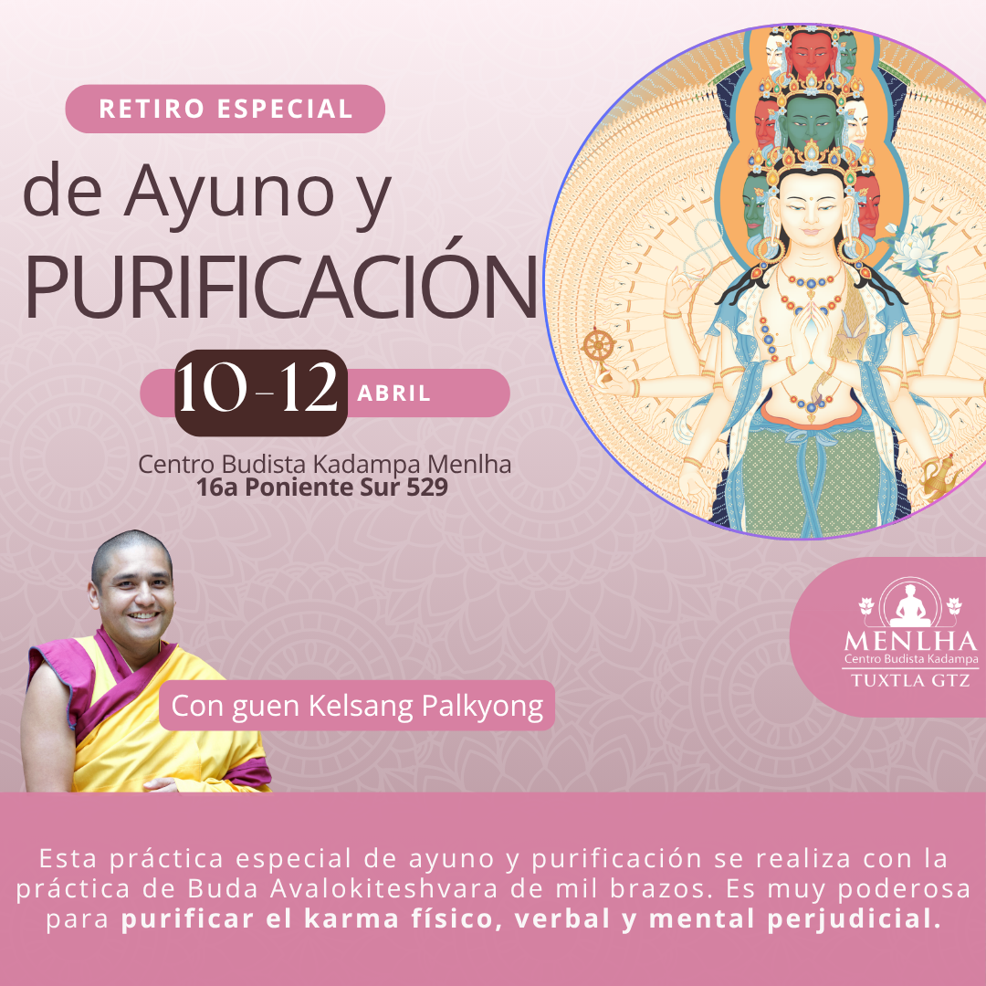Esta práctica especial de ayuno y purificación se realiza con la práctica de Buda Avalokiteshvara de mil brazos. Es muy poderosa para purificar el karma físico, verbal y mental perjudicial, y para pacificar perturbaciones mentales intensas como el apego y el odio. Además, es un método especial para mejorar nuestras experiencias de amor, compasión y bodhichita.