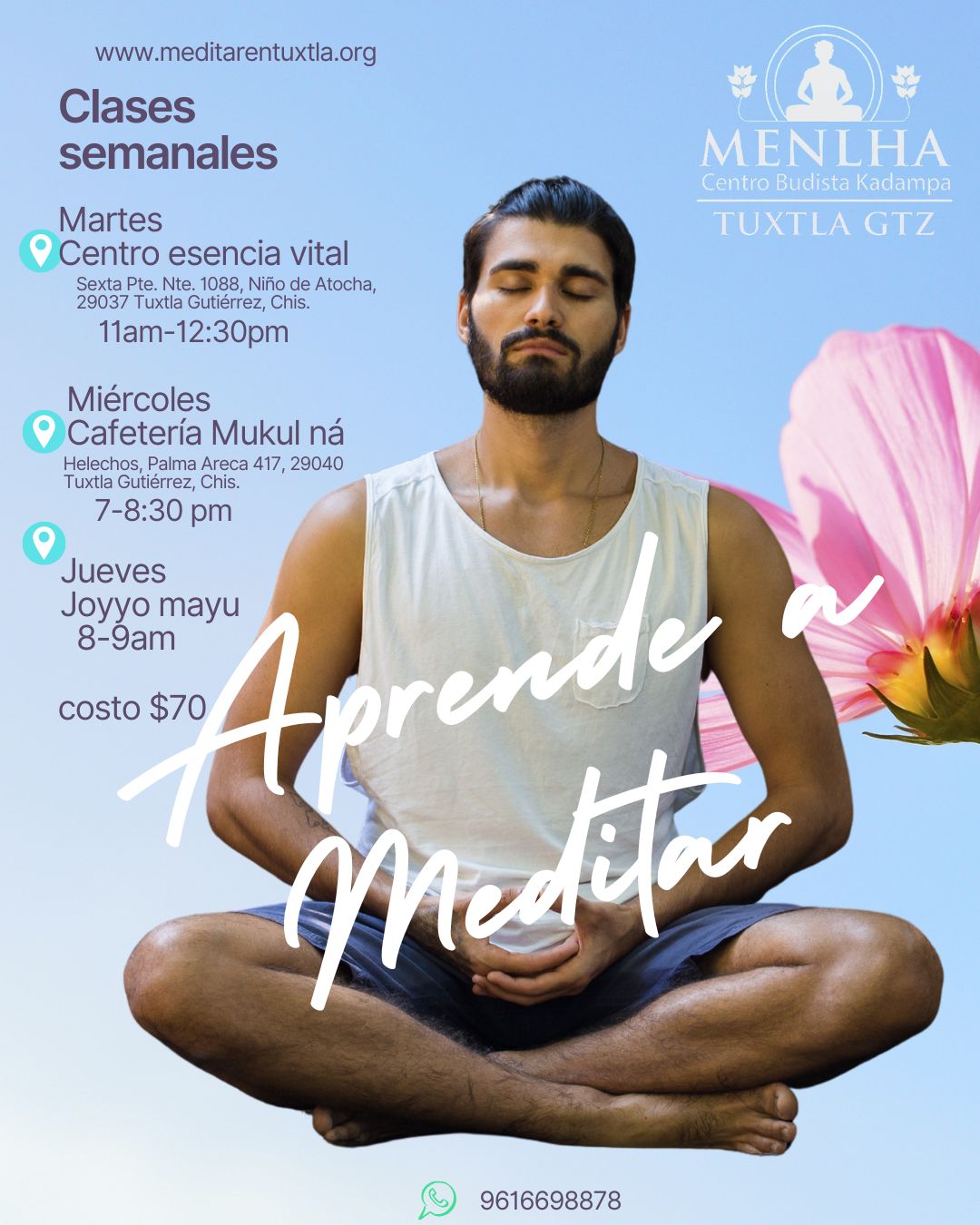 Clases en anexos del Centro Budista Kadampa Menlha, con horarios y ubicaciones pensadas para ti.